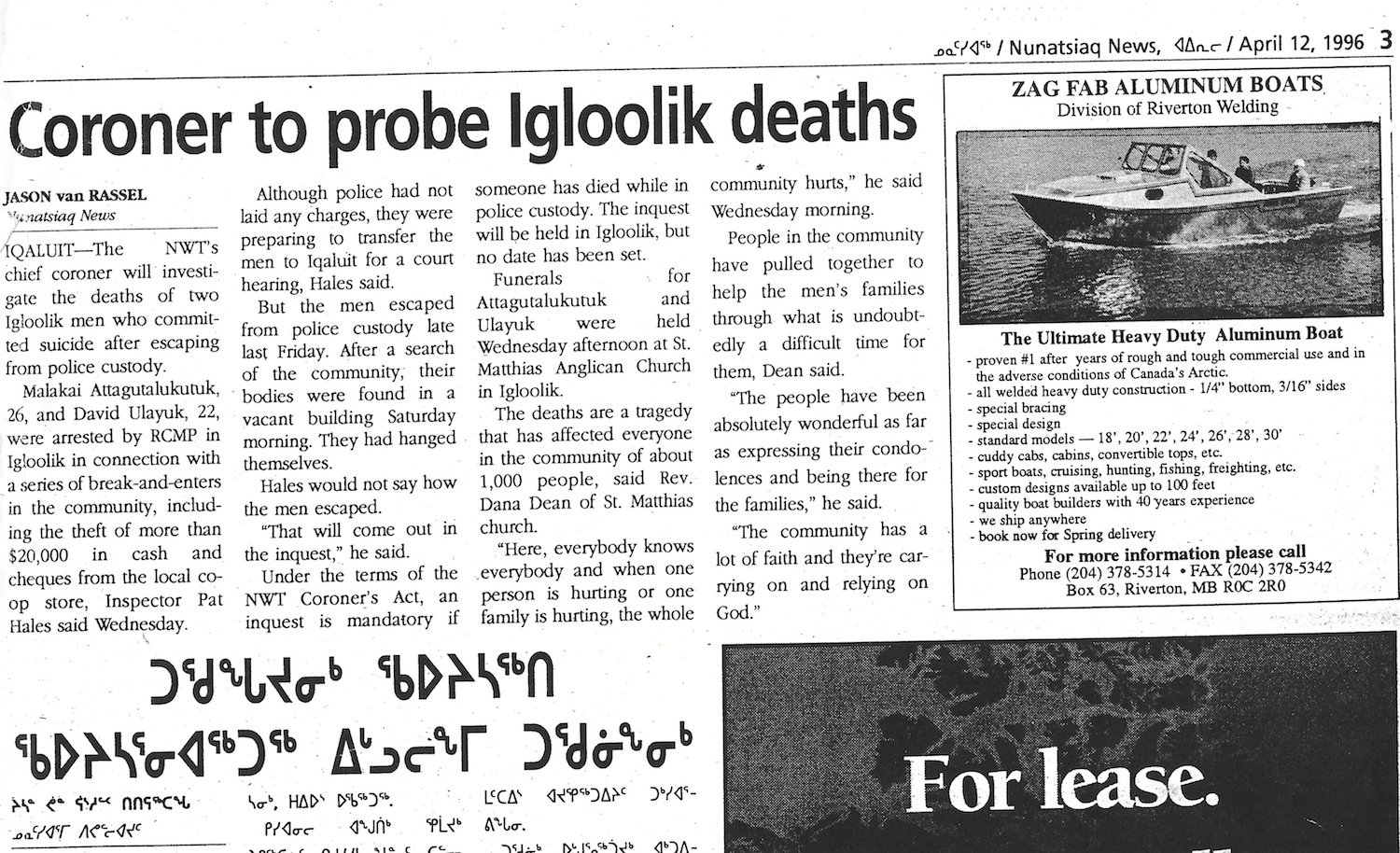 Some months before my visit to Igloolik in 1997, two men in their 20s had hanged themselves after escaping police custody, in a suicide pact that shocked the community.
