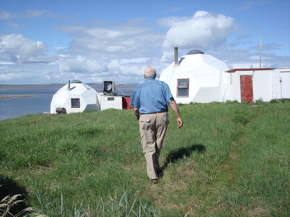 Glenn Warner, who died in 2014 at the age of 80. walks towards two of the three remaining domes at Bathurst Inlet in 2008.