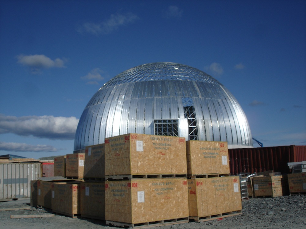 When I visited Agnico Eagle Mines’ Meadowbank mine near Baker Lake in 2009, this dome to hold processed gold-rich rocks was still construction. (PHOTO BY JANE GEORGE)