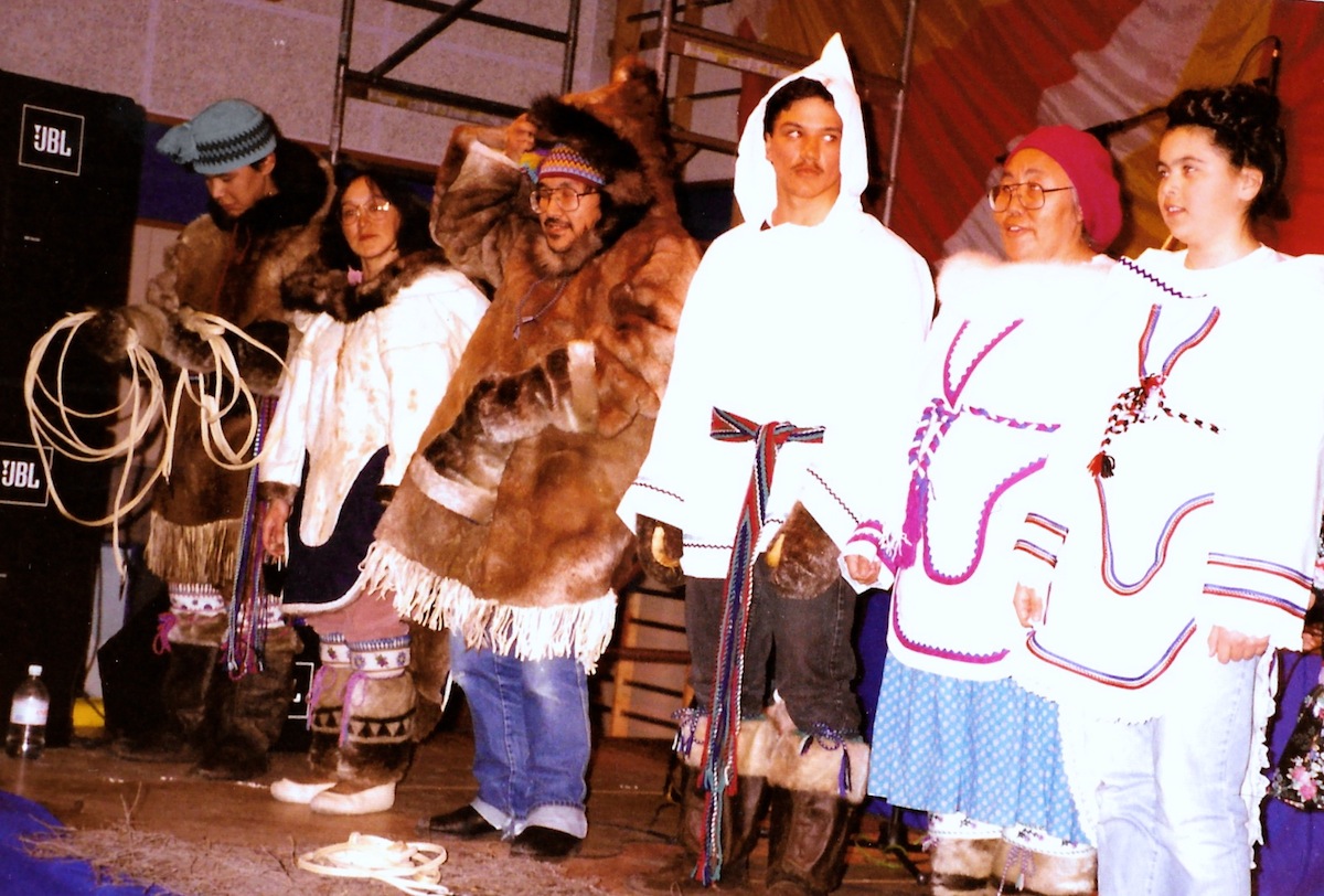 I am photographing this fashion show of traditional closing when I am dragged out and threatened by a Makivik lawyer at the 1996 Makivik AGM in Inukjuak. (PHOTO BY JANE GEORGE)